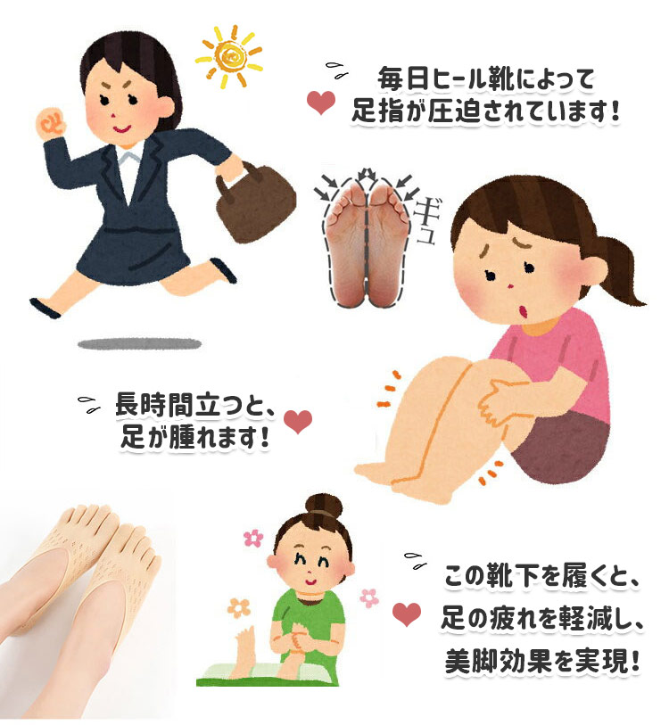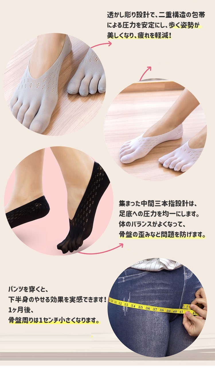 【5本指靴下】足底のストレスを軽減し、姿勢を矯正、防滑 快適 通気 薄手 爽やか