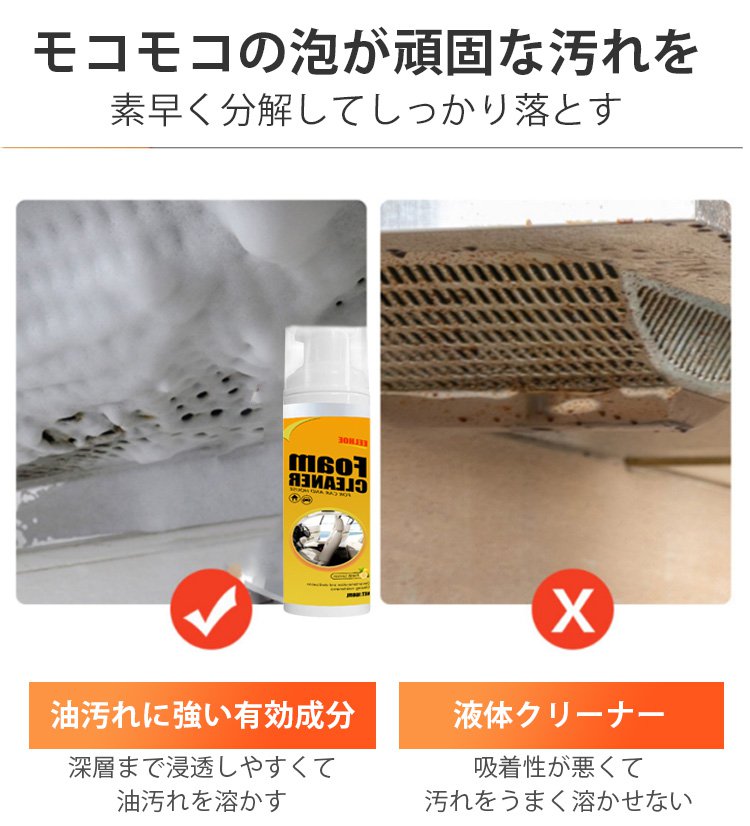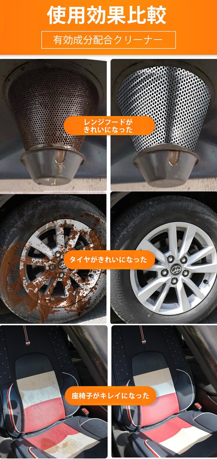 【多機能泡タイプクリーナー】【車用/家庭用】強力な洗浄力、汚れを溶解する、安心安全、汚れをしっかり吸着する